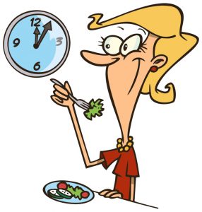 Fast-food-ul a primit acest nume deoarece se prepară și se consumă rapid. Însă tocmai această rapiditate a mâncatului este extrem de nesănătoasă. Dispunem de dinți și de glande salivare pentru ca digestia să înceapă încă din gură. Dacă mâncăm fără grabă și mestecăm mult, nutrienții sunt mai bine absorbiți. Ne simțim mai repede sătui și nu ne trezim că am consumat deja 1.000 de calorii, înainte să realizăm că am exagerat. Un sfat: dacă nu avem timp să mâncăm în tihnă, e bine să bem mai întâi ceai, cafea sau apă și să amânăm masa.