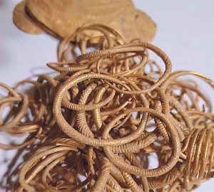 O descoperire arheologică de mare importanță a avut loc recent în județul Cluj: un pasionat de comori ascunse a dat peste 121 de piese din aur. Specialiștii datează piesele în epoca bronzului, în intervalul 1.400-1.200 înainte de Hristos. Printre ele se află și un exemplar unic pe teritoriul României. „E vorba de un inel făcut dintr-o sârmă mai groasă de aur, cu capete spiralate, pentru care încă nu avem analogii în România. Piese de aur preistoric avem în colecția muzeului, dar tezaure așa de bogate, nu”, spun reprezentanții Muzeului Național de Istorie a Transilvaniei. „Ulterior cercetărilor, piesele vor fi incluse în colecția muzeului, fiind niște obiecte spectaculoase și frumoase, pe care publicul trebuie să le vadă”, susține Victor Cubleșan, directorul Direcției Județene de Cultură Cluj.