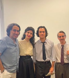 – Dedicația este aceeași, dar pot spune că producțiile mari au nevoie de o organizare extrem de riguroasă, că durează foarte mult. Filmului „Cravata galbenă” i-au trebuit șapte ani de la idee la premieră! Din acest punct de vedere, aprecierea mea crește și mai mult pentru eroii necunoscuți din cinematografie: organizarea producției, toți cei care nu se văd pe ecran și care au numele scrise în litere de-o șchioapă pe generic. Eu mă ridic și-i aplaud pe acești oameni fără de care nimic, dar absolut nimic, nu ar funcționa. Vă spun cu mâna pe inimă, că echipa cu care am lucrat eu la acest film m-a făcut să mă simt ca într-o familie. Ştiu că poate suna ca un clișeu, dar vă asigur că nu e, pentru că ai sentimentul acesta de familiaritate doar când ești printre profesioniști. Ei nu vor face niciodată diferență între cel mai mare și cel mai mic, eu am fost la fel de bine primită, ca numele celebre de pe afiș. Repet, am avut numai experiențe plăcute la filmare. Am jucat alături de Ben Schnetzer, extrem de talentatul actor american, care-l interpretează pe Sergiu Celibidache tânăr și până la o anumită vârstă a maturității. Am rămas surprinsă de harul lui extraordinar, dar mai ales de cât de muncitor este, cât de grijuliu pentru cei din jur. Atent, mă întreba tot timpul dacă mă simt bine, dacă tot ce înseamnă conexiune între noi, ca actori, e bună. Nu a fost centrat deloc doar pe el, deși a avut un rol extrem de greu, enorm, foarte solicitant. A trebuit să învețe să dirijeze, să cânte la pian… Între toate acestea, să rămâi disponibil și prietenos, mare lucru! La fel este și scenaristul James Olivier, care are și un rol în film. Să nu mai vorbesc de cât de delicat, rafinat, serios și profesionist este regizorul Serge Ioan Celibidachi. De aceea revin și spun că marii artiști sunt și mari oameni, altfel nu se poate.