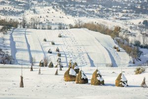 Dar în nicio casă din sat nu se băuse vin şi nici un copil nu avea unchi atât de înalţi şi făloşi, care să corinde atât de frumos şi să treacă Gutâiul în Ajunul Crăciunului, noaptea, cu sania. Apoi caii aceia mari au avut vreme să lase tot satul cu gura căscată, fiindcă „Bătrânul” (Gutâiul) s-a închis de-a doua zi de Crăciun, când s-a pornit o ninsoare şi-un viscol, încât nu puteai să ieşi din casă. Unchiul Augustin şi caii lui falnici au stat la noi o săptămână, până ce-au ieşit oamenii cu plugurile şi cu lopeţile şi au reuşit să deschidă drumul. Dar asta a durat. În această vreme, nevoind să stea degeaba, unchiul a cărat pe câmp tot gunoiul de grajd, scutindu-l pe tata de o muncă grea şi istovitoare; înjumătăţindu-i-o, în orice caz. Toată lumea întorcea capul cu admiraţie după caii aceia minunaţi. Unchiul Achim şi unchiul Vasile şi-au făcut curaj şi-au pornit pe jos, zicând că vor merge înainte, rupând urmă în faţa femeilor prin pădure, pe scurtături. Cred că Moşucu’ (Bunicu’) Indrei se ruga în continuu, ascultând dangătele clopotelor din şapte sate, ce se aud până pe coastă. Dar totul s-a terminat cu bine.
